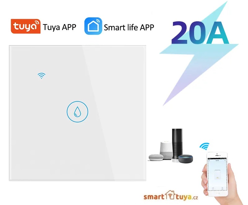 - Chytrý nástěnný spínač na ohřívače vody (bojlery) ovládaný aplikací, dotykem nebo hlasem