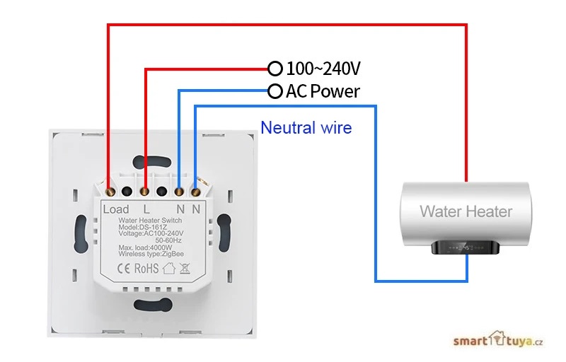 - Chytrý dotykový spínač na ohřívače vody (bojlery) Zigbee je kompatibilní s OS Android a iOS