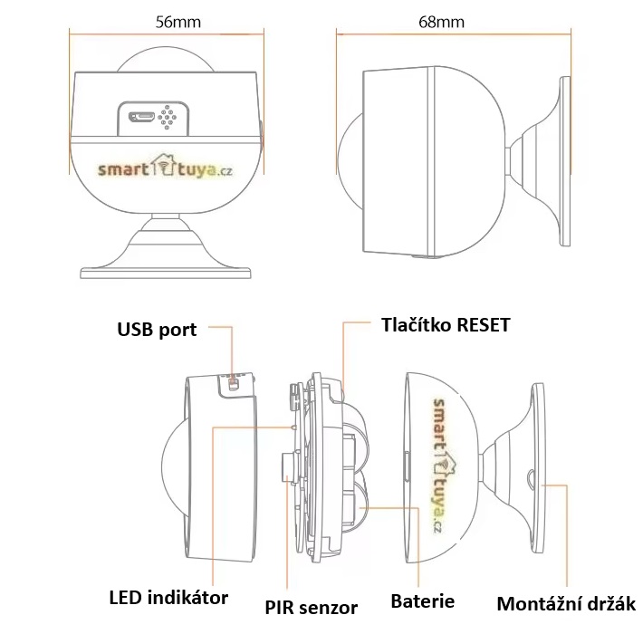 - Pro funkčnost PIR senzoru je zapotřebí zakoupit bránu/řídící jednotku